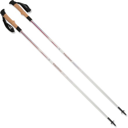 With an ergonomic grip angle for maximum wrist comfort a 100 natural cork grip a fusion comfort strap and double flicklock adjustability the trail ergo cork defines 4 season on trail versatility and comfort.