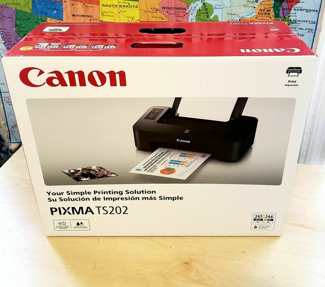 Pixma ts202 box contents pixma ts202 inkjet printer 4 x 6 photo paper sample pack 3 sheets gp 701 setup cd rom full set of ink cartridges pg 243 cl 244 power cord company about canon u s a inc.