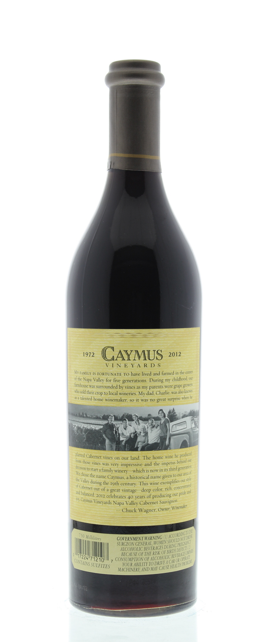 The wagner family has been producing caymus cabernet in the napa valley since 1972 with the grapes for their benchmark wine being first planted in the mid 1960 s.